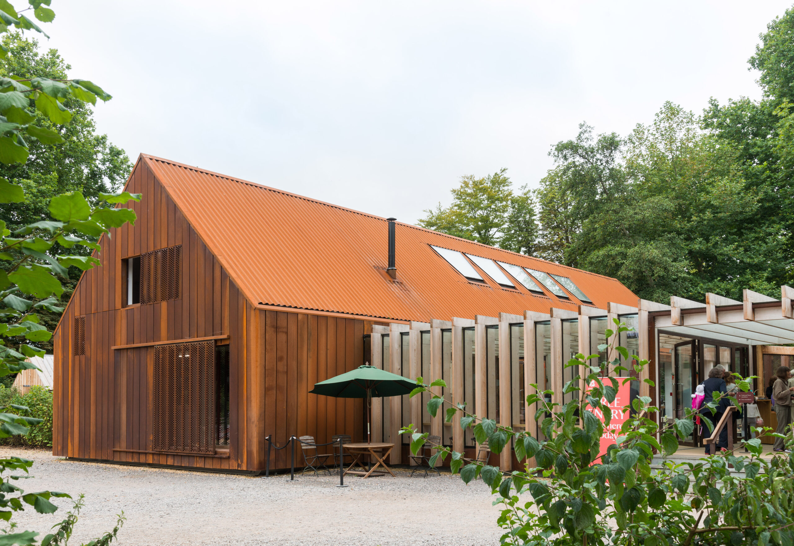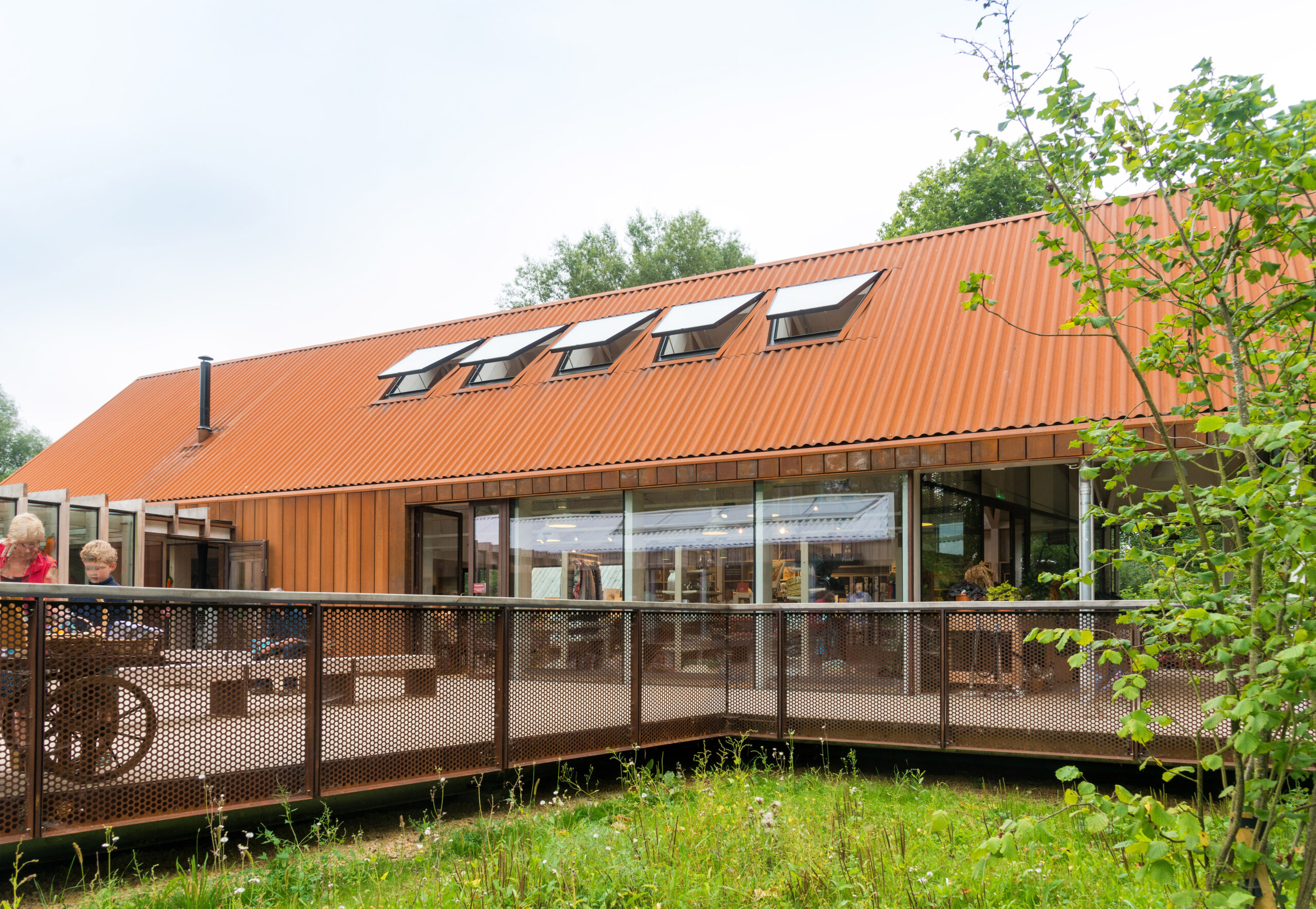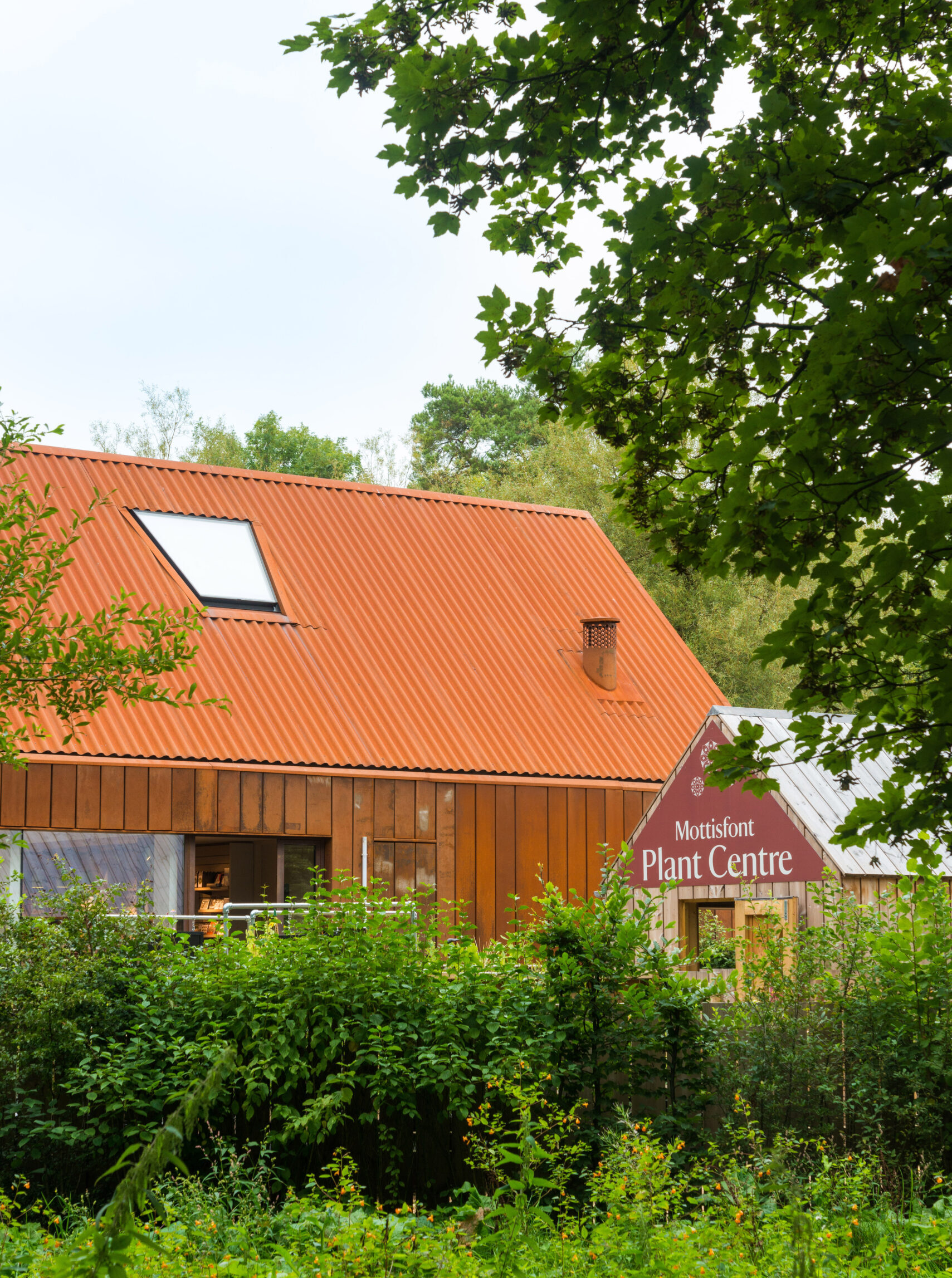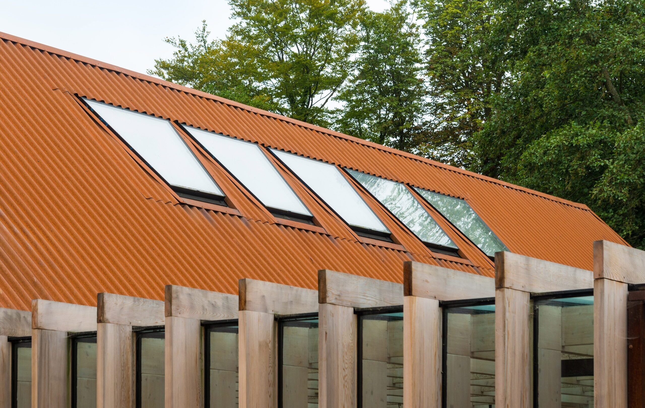 Mottisfont Abbey is a historical priory and country estate in Hampshire, operated by the National Trust. Our Bespoke Design Team created a suite of Neo® style trapezoidal Rooflights to feature on the corten corrugated roof of their new visitor centre. The project required close collaboration between the architect’s team at Burd Haward Architects Ltd, Beard Construction and our design team in order to ensure all the angles matched perfectly. To support this, a bespoke base frame was designed for the flashing to run from the top of the corrugated corten and down to the frame channel, passing over the frame edge and sealing the opening. A neoprene interlayer was placed between the corten and steel rooflights to separate the two metals.