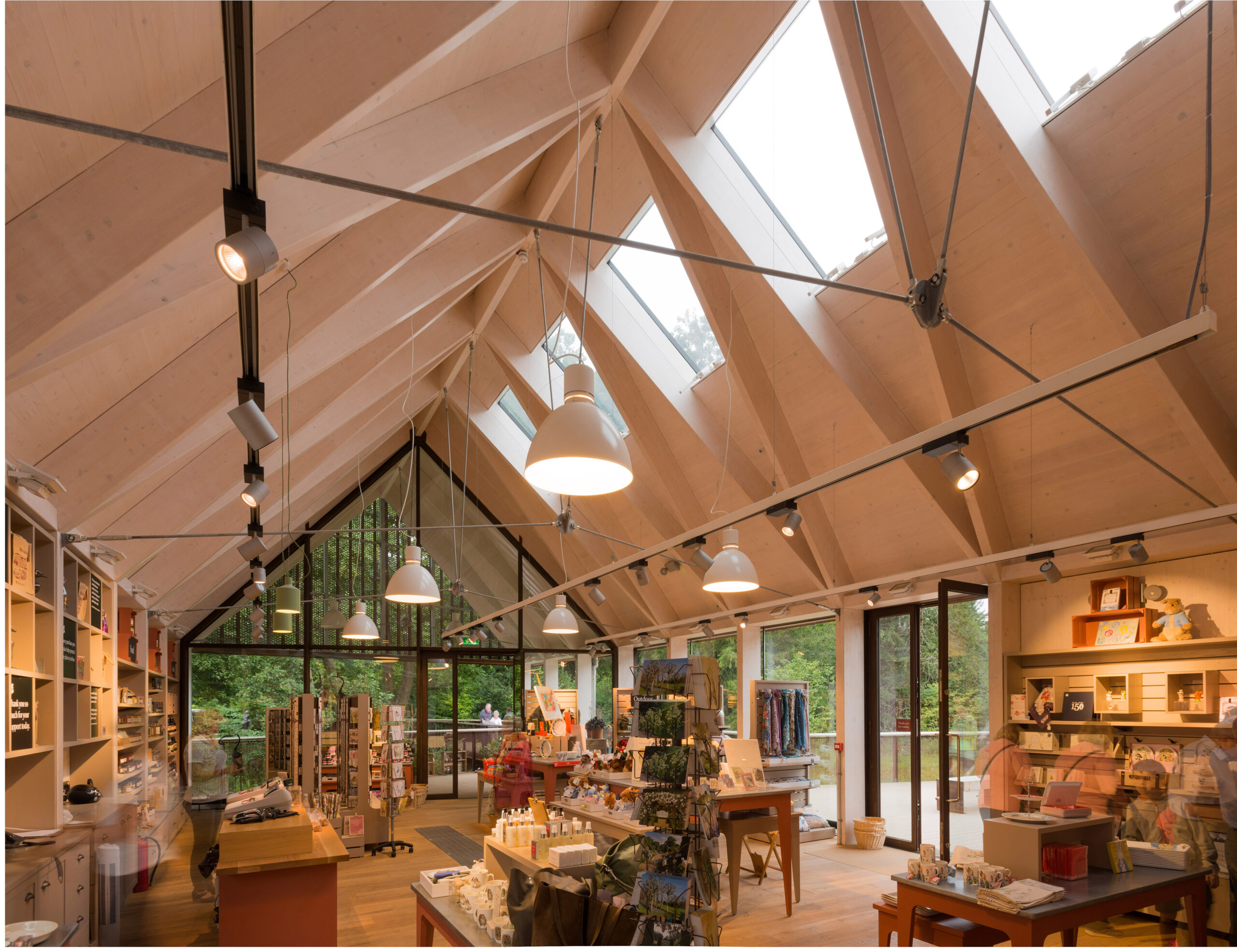 A particularly important element of the design was the use of bespoke rooflights in the gift shop, which enhance the space with natural light whilst also contributing to ventilation and temperature control. Designed to resemble a traditional agricultural barn, the rooflights allow an abundance of daylight to flood the interior, creating a light and airy environment that benefits both the visitor experience and the building’s energy efficiency.
