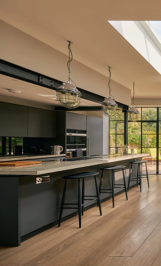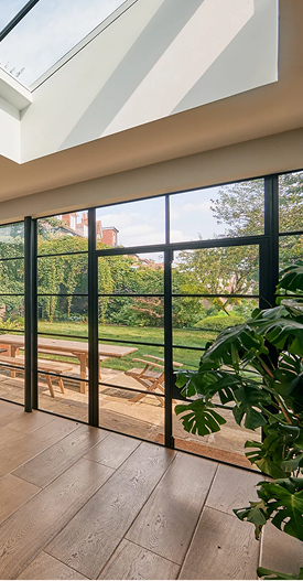 The extension to this exquisite private residence in Kew is the great work of Simon Merrony Architects. Unique sawtooth lighting sections consisting of vertical glazing with bespoke Conservation Plateau Rooflights, introduce height and an abundance of light into this open living space.