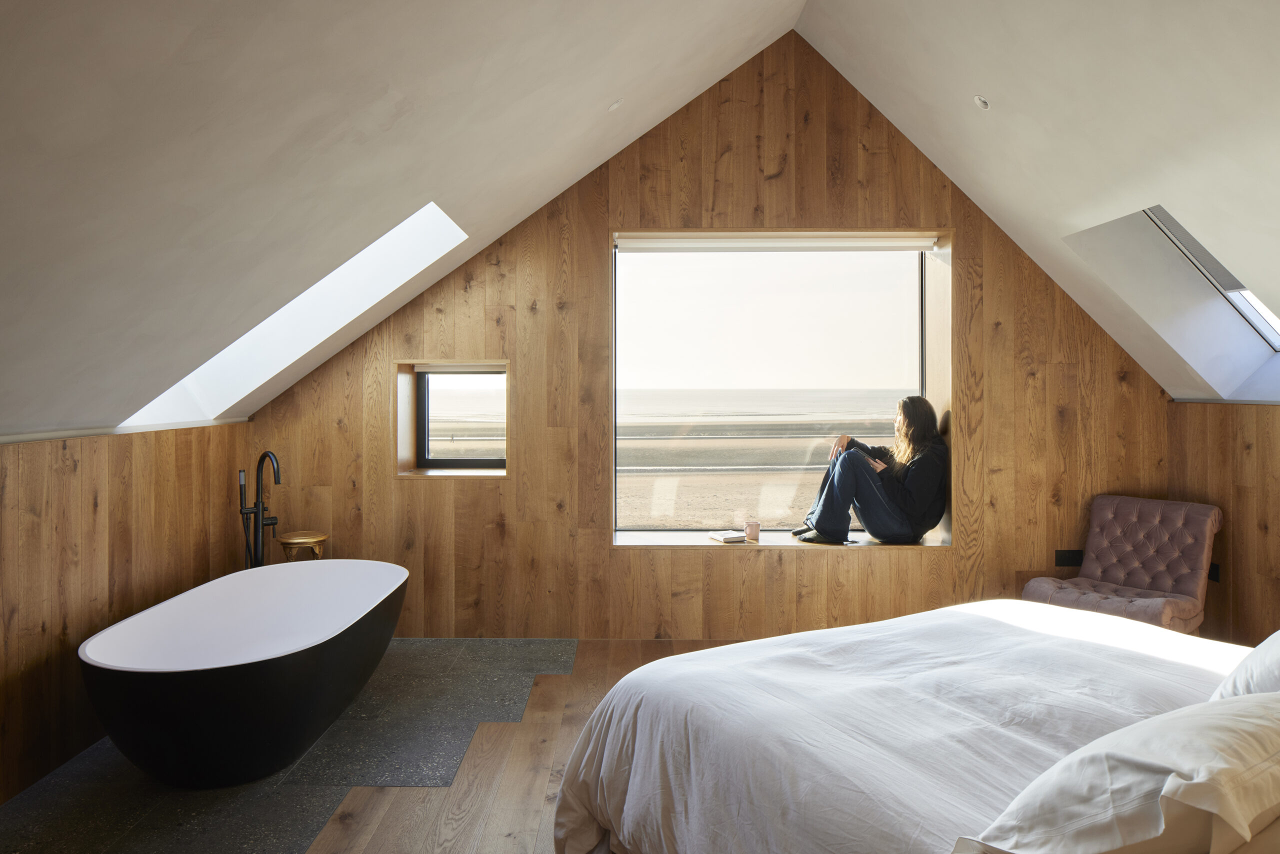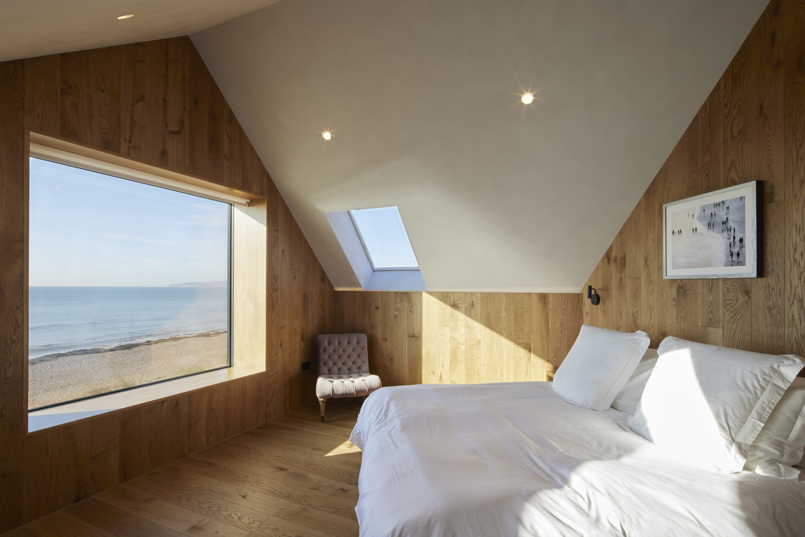 Internally, the Neo Rooflights introduce generous height and abundant natural light, framing views of the shoreline and drawing the beachfront directly into the living space. This creates a bright, uplifting interior that epitomises the essence of a coastal retreat.