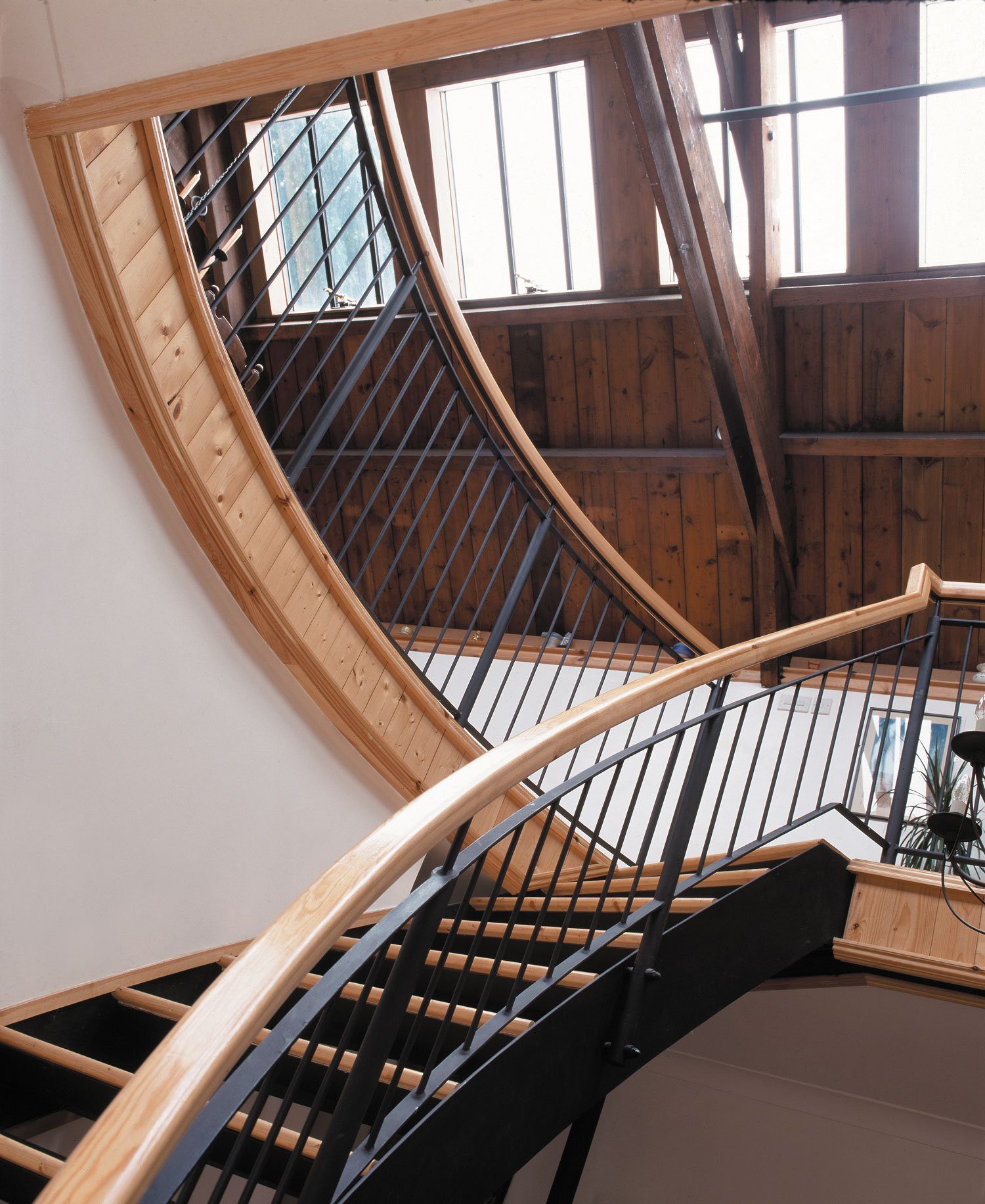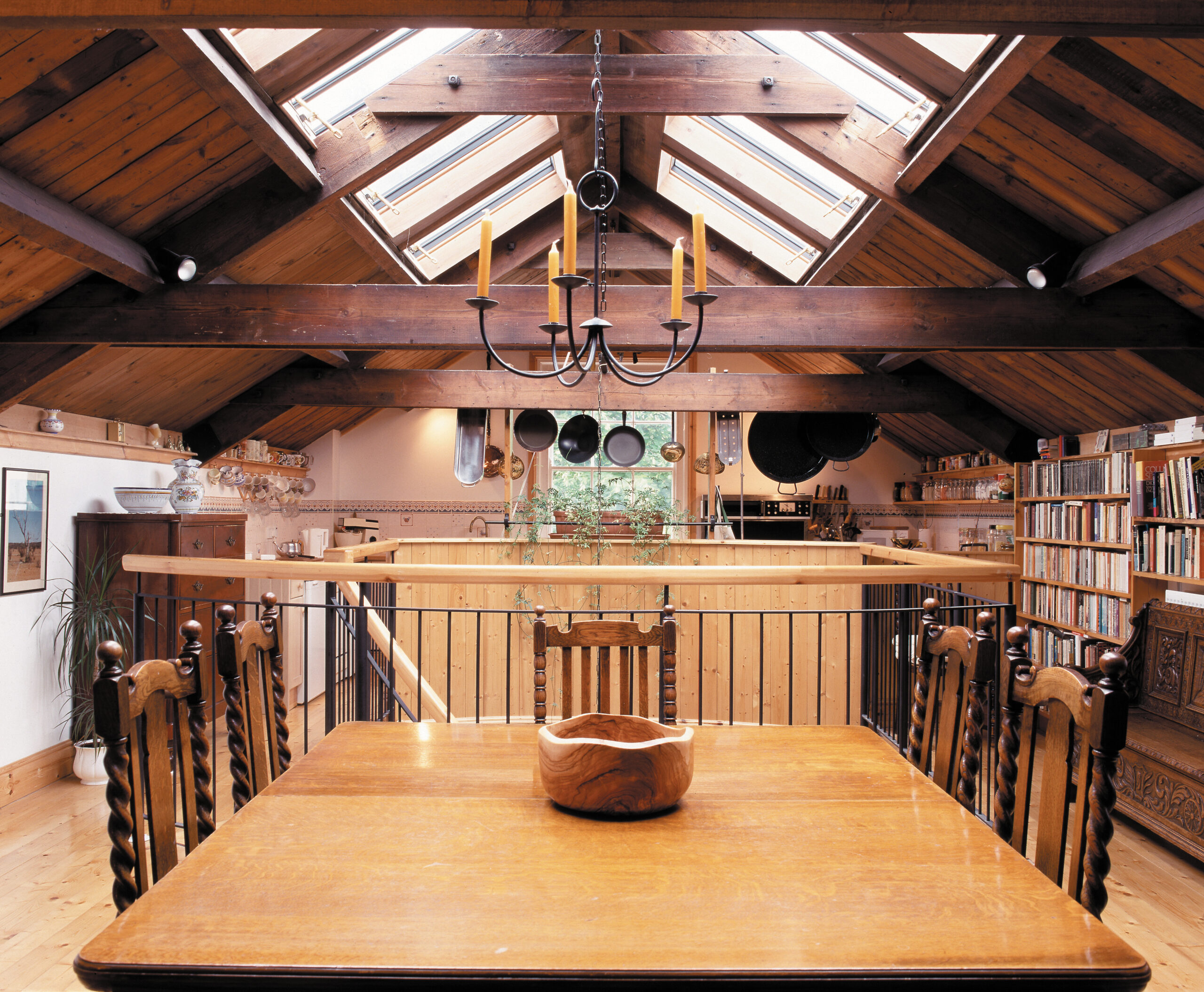 This Victorian Coach House underwent an extensive refurbishment by award-winning architect Peter Williams. The hall and stairwell are now flooded with natural light, illuminating the dining space below through use of a run of linked Conservation Rooflights.