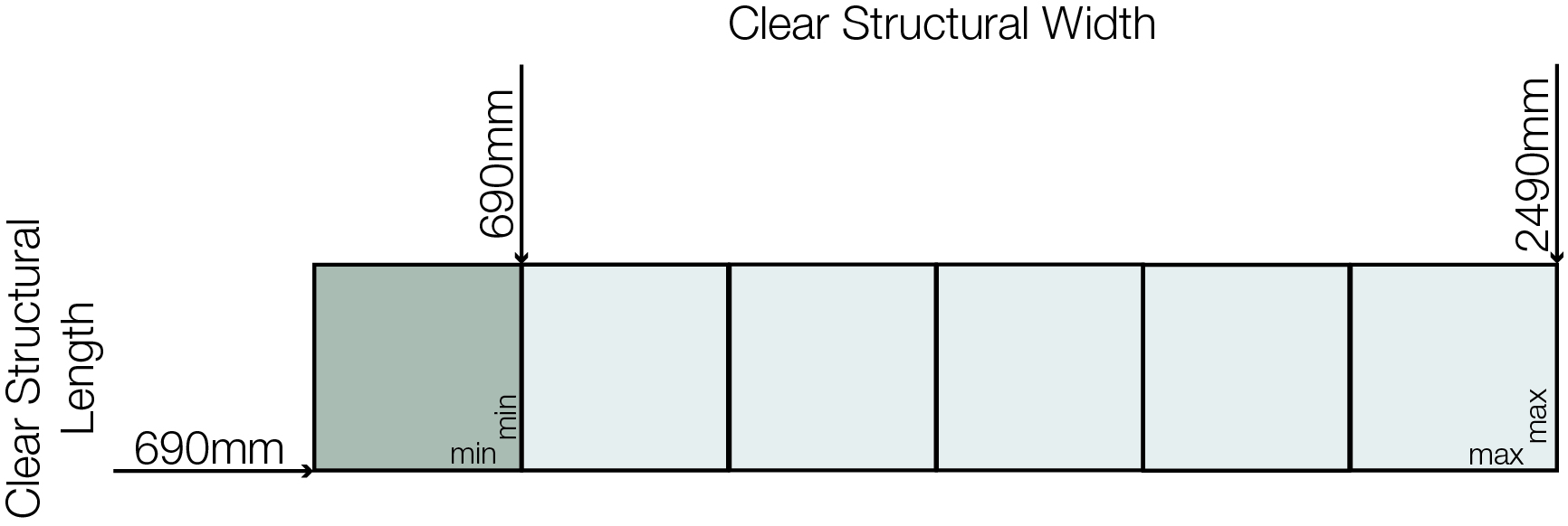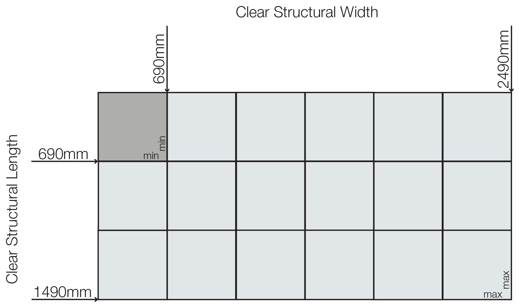 Installed onto a hardwood timber, reinforced concrete or steel kerb, the High Security Rooflight SR2 can be tailored to a size to suit your project within the size parameters referenced in the grid below.